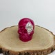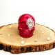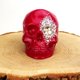 骨架是我用石膏铸造的,涂有压克力红色涂料,并覆盖有光泽的清漆。一只眼睛的内部黏上莱茵石和珠子。假头骨的尺寸为 7*7.6*9.5 厘米(2.7*3*3.7 寸)。