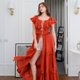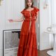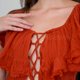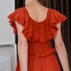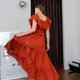 #均码 (Free Size) 胸围 30-42 寸 松紧腰围均码,臀围均码 衣长:54 寸 颜色:酒红、砖橘 商品细节: - 采用纯棉胚布制成,100% 纯棉,无化学添加 天然有机材质,无需熨烫,越洗越柔软,越旧越有韵味,质感极佳 - 手工制作,顶级质感,布料优良,飘逸动人 - 层层叠叠的拼接荷叶边设计,手工艺独特 - 背部松紧设计,修饰身形,绑带可调节长度