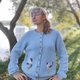 如果你选择开衫的深色,那么鸟用白色浅灰色和深灰色纱线绣上。