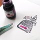 许多钢笔爱好者们有将墨水涂抹在手帐或笔记本上的习惯、因此我们制作了这款试色章、让墨水能够涂抹在印章里所预留的空间,还可在章上加注日期、时间、或是在旁边写下对于这个墨水的感想。除了日后可以回顾当时使用这款墨水的心情之外,如果有朋友想知道墨水的颜色表现,也可把使用试色章作的色样秀给他看,甚至做成小卡送朋友也是一种方法喔!