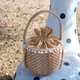 水葫芦编织袋 尺寸 5x6.5 英寸 + 叶子周围饰有珍珠流苏 + 抽绳衬里 + 木珠把手