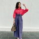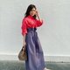 cocorose 撞色衬衫洋装 仙丹红