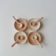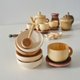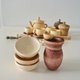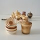 We invented colors and painted this set of dishes by hand. Ware wooden. Linden tree. Varnish safe.