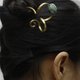 这款发簪我们采用锻敲及碾压的金工技法,呈现出金属由粗到细,由圆到扁如缎带般流畅多变的金属线条,百炼钢也化成了绕指柔。