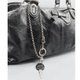 因为是单肩包,所以双手都是空闲的。为 Liucia 手工制作的配饰,采用定制银和带有精致品牌徽标的硬币。