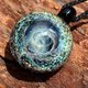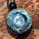 Using a color made of silver, we made a three dimensional swirl pattern, using a material called Dichroic glass, made a sparkling glass pendant glittering.
