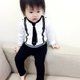 长袖【小绅士全副武装】白领带包屁衣+绅士长裤|礼盒组|→