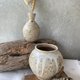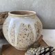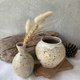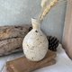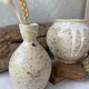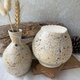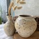 一对小陶瓷花瓶,白,哑光圆点,高 4.5 和 5 英寸。