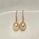纱织小姐甄选出一对最小直径约9.8mm的水滴形南洋金珠,配以晶体锆石镶嵌S925银14K注金配件形成简约款灵动耳环。珍珠香槟金色,皮光细腻,金色辉煌,有轻微皮纹但瑕不掩瑜,不同光线背景下呈现出不同的光感和光彩,具有简约耳奢华的珠宝感,贵气十足。