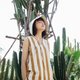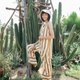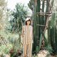 [ 套组 ] V领棉质印花短版上衣,搭配高腰宽裤,裤头松紧设计。附侧口袋。 单一尺寸 上衣:胸围 37 寸,衣长 33 寸 裤子:腰围 24-28 寸 (松紧) 臀围 42 寸,裤长 38 寸