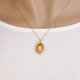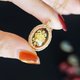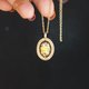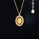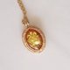 这枚椭圆形吊坠镶嵌着一颗通透的蜜色波罗的海琥珀。采用阴雕技法,从琥珀内部雕琢出一朵完整盛开的玫瑰。这朵花悬浮于莹澈的深处,从正面观赏,呈现出令人惊叹的三维立体效果。