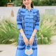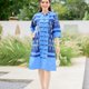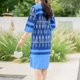 印花棉质连衣裙,中式领子,前纽扣开衩。