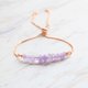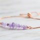 使用紫水晶碎石,配以镀18k金,玫瑰金,或镀银拉绳手链。