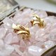 **磨纱金色花卉形状夹耳环耳夹 日本高级二手中古古着珠宝首饰**