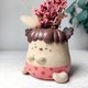 this cutie can match stationary, dry flowers, also the glaze inside allows water to be contained for fresh flowers.