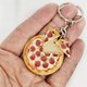 Key ring with a realistic miniature pepperoni pizza. The pizza is made of polymer clay.