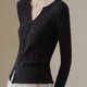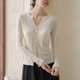 亚麻莱赛尔肌理感小 V 领扭结门襟针织衫