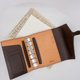 内侧右侧附有后袋,以及环状笔套。内侧右下方印有 Brelio 的 Logo。