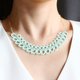 It is a cool light blue necklace knitted in a tatting lace.