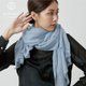 - 简约单色系围巾,永不退流行的款式,依据每一年流行的颜色设计当年度最新的色彩, 大版款式的围巾,可以一般缠绕围脖也能作披肩御寒,搭上短流苏收编,时尚度大增。