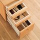 附轮抽屉柜有三个浅抽屉和一个最下方的深抽屉。虽然体积小,但由于没有多余的装饰,所以收纳能力也很足够,让您方便整理,工作也会很顺利。把手的部分和书桌抽屉一样是装上圆润的木头把手,将整体俐落的印象柔和地整合。还有为了让最大的抽屉即使收放很多物品而重量变重时还是能滑顺地开关,所以装有滑轨,且附有隔板,所以感觉也能畅快地做收纳。另外底部附有轮子,所以移动也很方便。