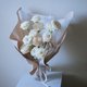 ・优雅的纯白玫瑰搭配奶茶色包装,呈现下午茶时光般的自在美好。玫瑰上点缀蝴蝶结装饰,用细节增添轻松浪漫感