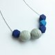 《LaPerle》几何 圆珠 木珠 宝蓝 粉蓝 间条 条子 原创 手作项链颈链首饰 镀铑铜链 Ball Royal Blue geometric Necklace Handmade stripes Free Shipping