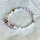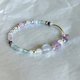 蓝紫色系的水晶搭配白冷调的925银配件,银框包覆圆珠,加上方形、不规则形的紫晶,仿佛山野间崎岖不平的地势,而圆润的白玉髓润滑了不同颜色间的棱棱角角