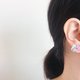 这款贴耳的款式除了颜色一样使用系列色以外~形状还刻意做成符合耳垂下摆弧度的样子,像波浪一样的下摆靠着耳垂很~可~爱!上面加上了立体的迷你小珍珠增加存在感,戴起来非常美喔!