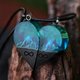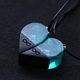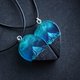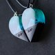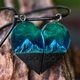 手工制作的配对心形吊坠,采用黑色鹅耳枥木和环氧树脂制成,内有雪山。