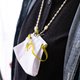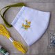 A pretty mask is completed just by sticking [a little] mimosa flower embroidery on this pure white cotton cloth that can be washed and used many times.