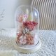选用永生玫瑰花并搭配精致的索拉康乃馨,罩上透明玻璃,放于家中、房间、书桌、办公桌上,更能轻松赏玩、带来心灵疗愈的感受。