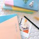 但装订方式上做了改变,内页本采裸装,可以轻松摊平,每款随附专属封套,封面是亮面的材质,可以清楚呈现设计图样与纸质,内层为雾面材质,另外还有笔夹设计。