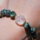 绿龙晶是绿泥石家族中的一个品种,硬度为6,产自西伯利亚比卡尔湖区,与紫龙晶的产地、形态、结构都相似,故称为绿龙晶。品质以颜色深绿,配以银白的纤维,平均的反射出如鳞片般的光泽为上。