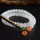 纯银镀金小圆珠与花托作为间隔,金光闪烁,与其他材质相得益彰,既丰富了手串层次,又提升了整体质感。从材质的精心挑选,到色彩的和谐搭配,再到细节处的匠心独运,每一处都彰显着手串的独特与精致。它不仅是腕间的时尚配饰,更是传递美好祝愿的载体,象征着福运常伴、生活多彩。这串和田玉藕粉三圈手串,宛如一幅流动的东方画卷,将自然的瑰丽与人文的雅致凝聚于方寸之间。佩戴于腕,让古韵今风交织,于举手投足间,尽显温婉气质与独特品味,成为岁月中一抹动人的风景。