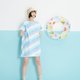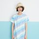 看到就觉得清凉的布料/白色包边布彩色车线/领口绑带设计/有袖子的A-line设计/无缝份设计