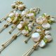 The shape of the pearls is different one by one, and the unique color that the brilliance of champagne gold and green can be seen and hidden on the base of orange cream is attractive.