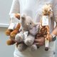 这款长颈鹿毛绒玩偶以柔和的棕色斑点和奶油色纹路呈现,外型逼真可爱。