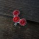 三个由两种颜色的红色丝线制成的部件沿着耳朵的线条并排放置。