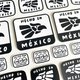 3 种带有代表墨西哥的鹰图标的“墨西哥制造 (Hecho en México)”贴纸