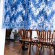 这是不如去作的新品繁花门帘(亦可用作布料),由手工蓝染/渐层染制作的蓝染门帘,把白色蕾丝设计的棉布在蓝染缸里反复浸泡,清洗,晾晒而成。全部使用天然染料和日晒制作而成,轻如蝉翼的蕾丝不论是制衣还是门帘都温柔且百搭。