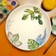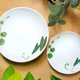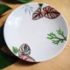 以台湾调配的矿物色粉,用毛笔调色混色绘制于 900度烧成的陶瓷素坯上,直接描绘植物样貌,画错难以修改,是耗时且难度高的手艺品,画完后再施透明釉,进窑烧成1230度,待几天降温后出窑后就是独一无二的生活器皿。