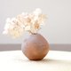 这是一个由粗糙的白色陶瓷粘土制成的烧制花瓶,给人一种陶器的感觉。