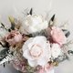 使用花面5-6cm的日本大地农场有机永生不凋玫瑰/不凋绣球,采用食用级染料。蜜桃粉玫瑰+米白马利安玫瑰+白色牡丹干燥木花+复古渐层色系绣球~是艺术感十足的复古配色,搭配不凋花叶材,好好照顾可以观赏3年以上喔~若需做成捧花请来信定制报价喔~