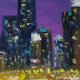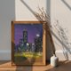 夜城油画纽约天际线城市原始墙壁艺术曼顿城市景观墙艺术 8x6 英寸