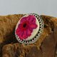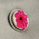 绣有洋红色花朵的手工胸针。 图案是我设计的,也是我绣的。 我在每幅刺绣图片中使用最大数量的颜色,使其更加逼真和丰富多彩。 这款花卉胸针由棉质绣花线绣在亚麻织物上。 细节: - 图案尺寸为 25x25 mm (1x1" ); - 总轮尺寸为 33x33 mm (1,3x1,3" ); - 材质:黄铜胸针底座、棉布、亚麻布。