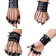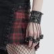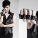 手环下方链条连接手指部小环设计,手环用骷髅头,尖锥钉作为装饰,增加了它的独特性,设计大胆而前卫
