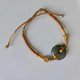 饱满圆润的冰油清平安扣,洒上一抹金,更为别致!此款已绑上手排绳,可调节手围!