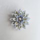 它是通过将乳白色布的花瓣与浅蓝色布边分层制成的。