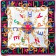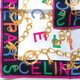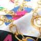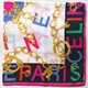 Celine 古着丝巾,展现大胆而引人注目的设计,将奢华的金链图案与点缀于边缘的多彩“CELINE PARIS”字样巧妙融合。